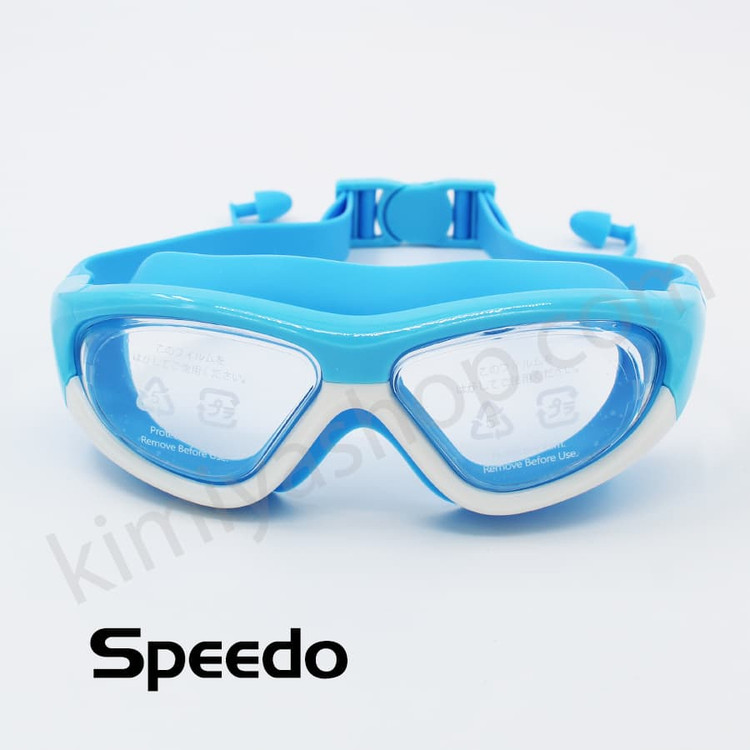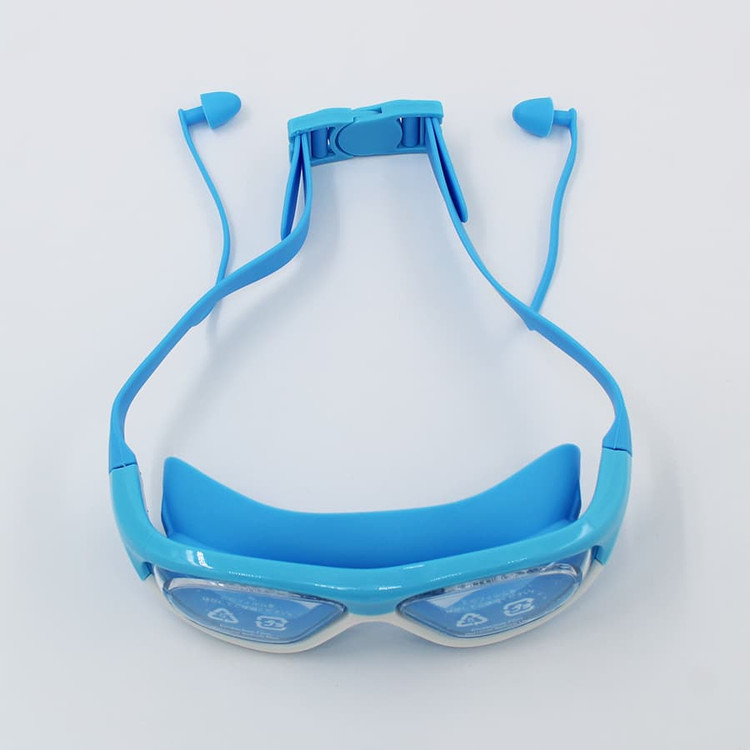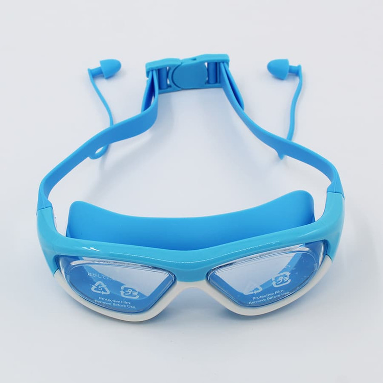 عینک شنا YONGBO آبی با خط سفید | ضد بخار و مقاوم در برابر کلر