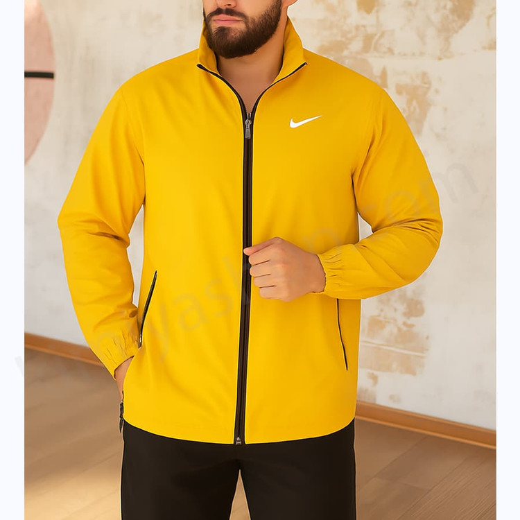 کاپشن اسپرت نایکی رنگ زرد ضد آب، سبک و گرم با دوخت تمیز و زیپ روان