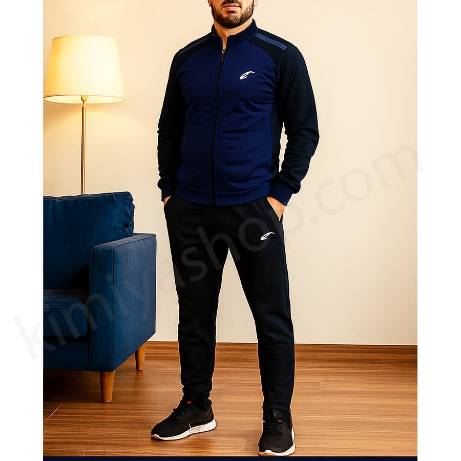 ست گرمکن و شلوار ماراتن استرج شمعی مردانه مشکی سرمه ای