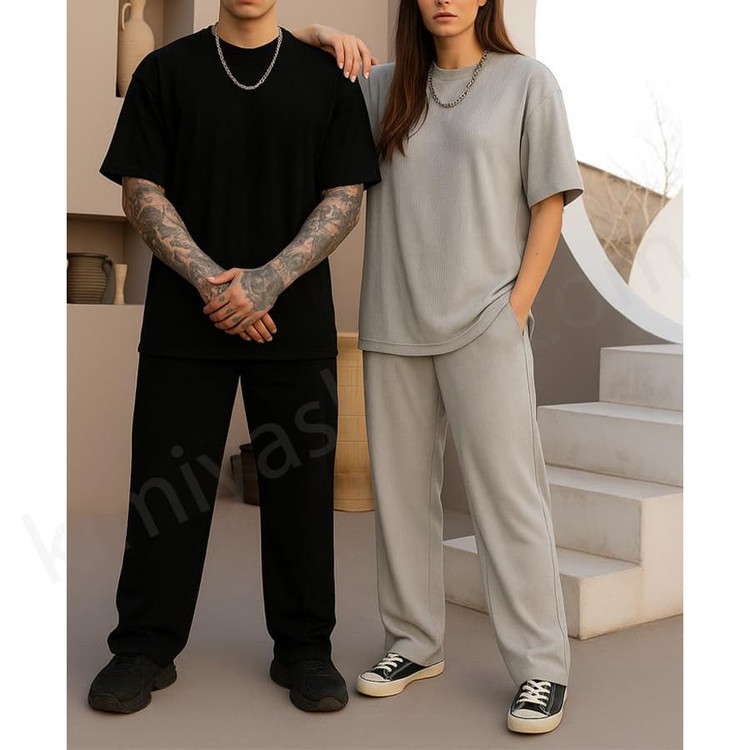 ست اسپرت مردانه و زنانه بگ – تیشرت و شلوار طوسی