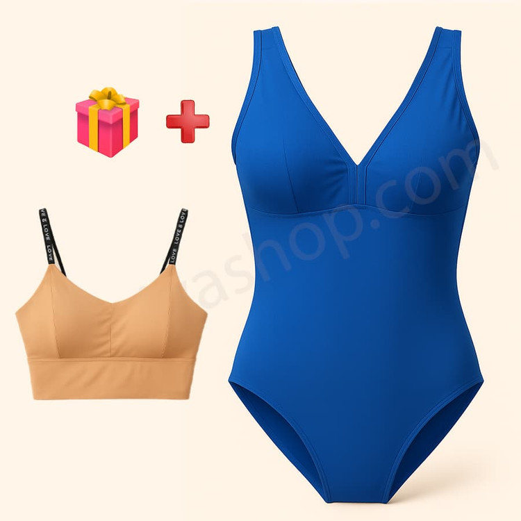 مایو زنانه اسلیپ پشت بسته آبی کاربنی + 🎁 هدیه نیمتنه زنانه – قدرت در رنگ، ارزش در انتخاب